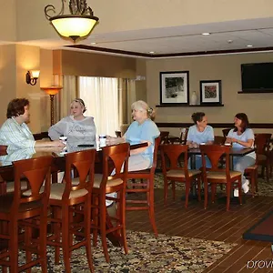 The Hampton Inn serves a cold buffet breakfast every morning. Serving American dishes, Applebee's is only 1.3 km away.
